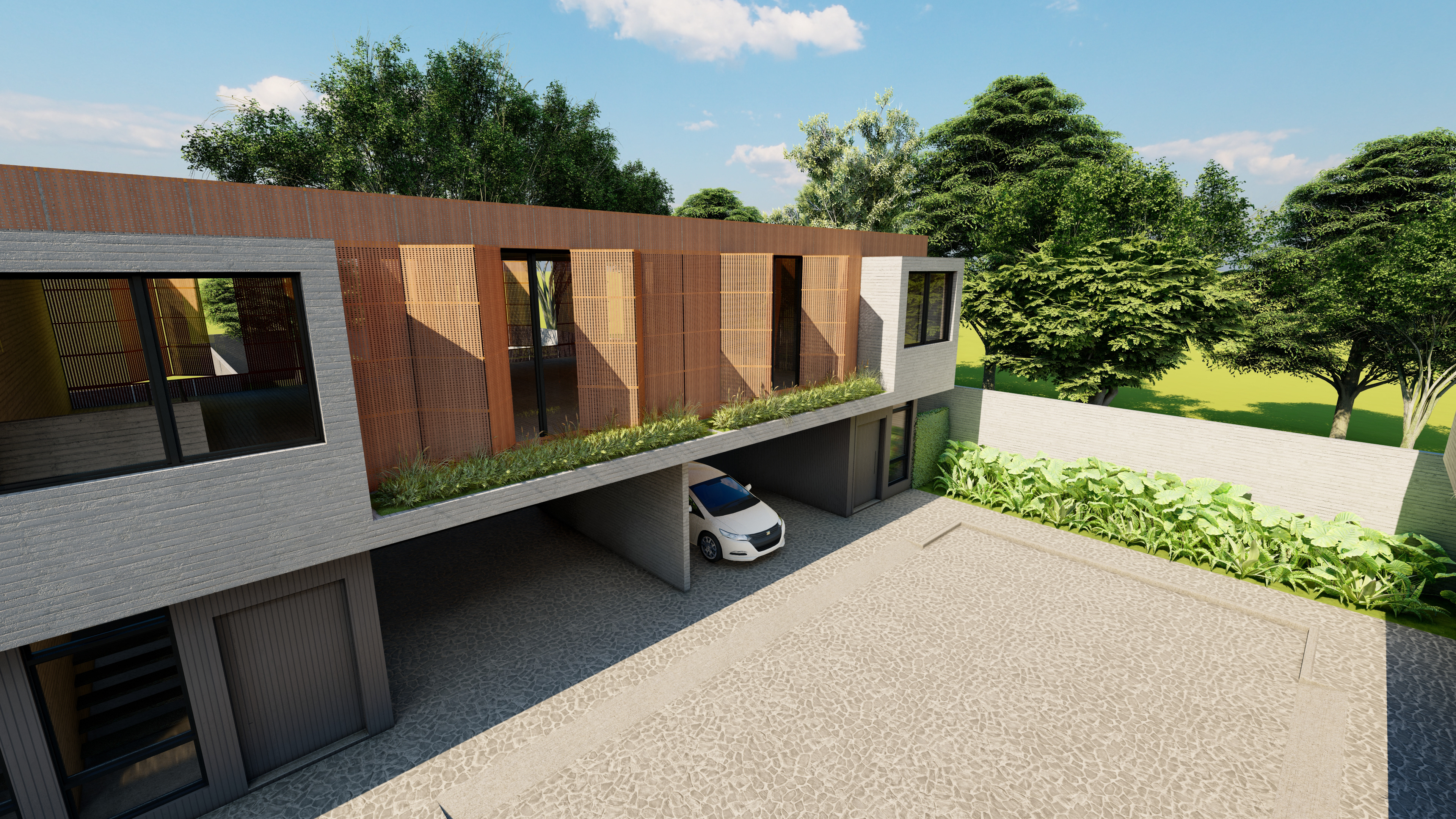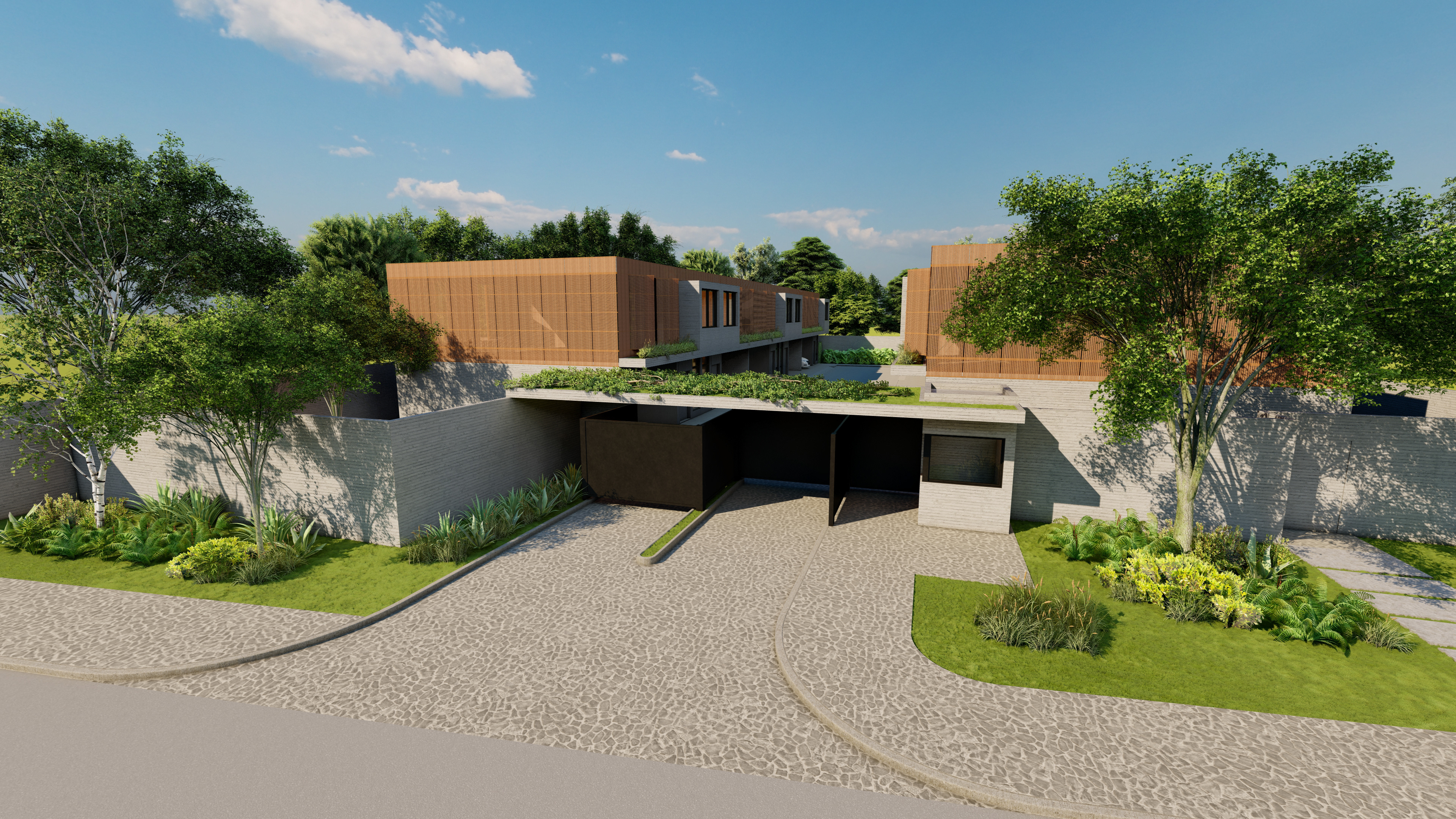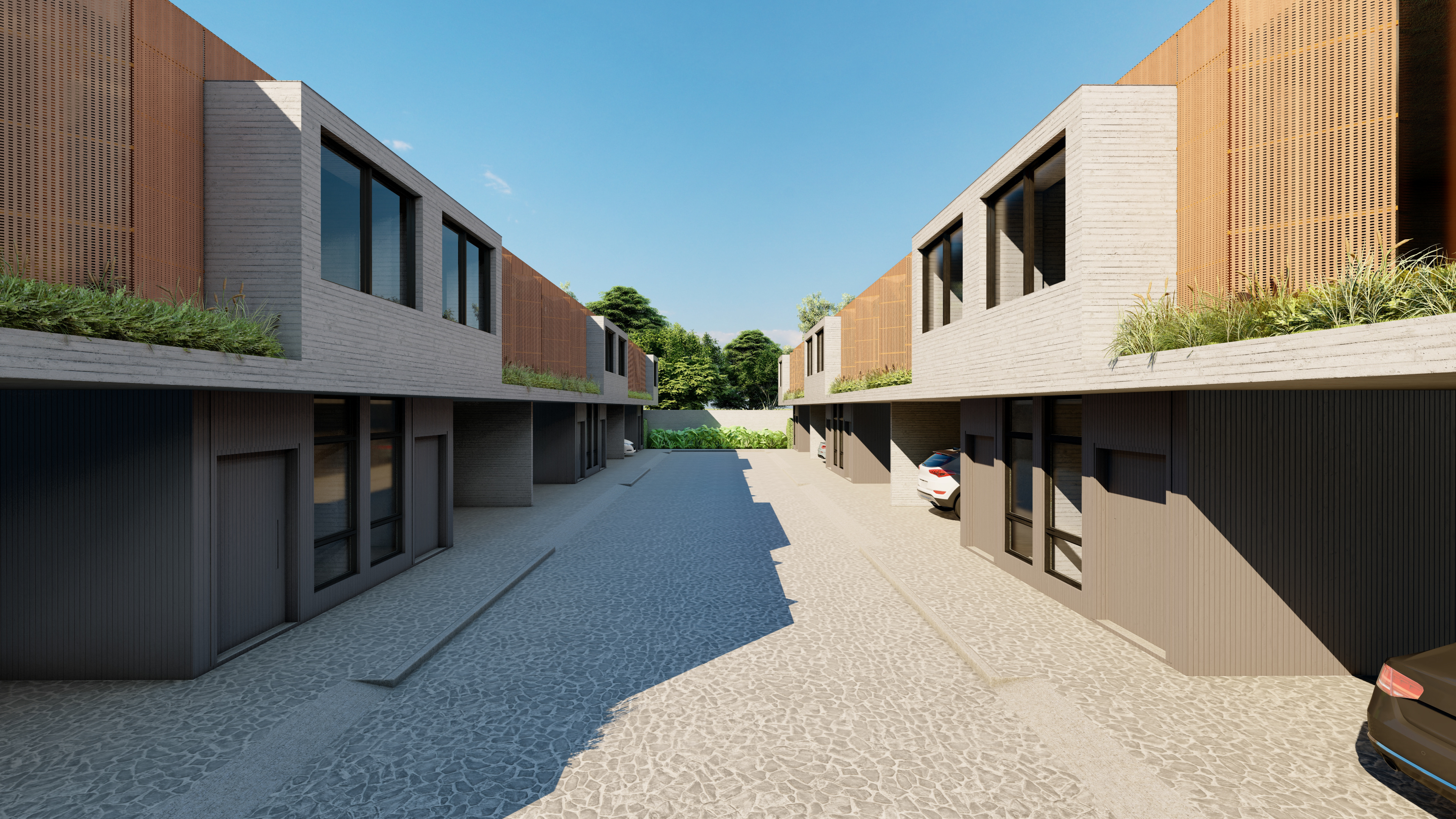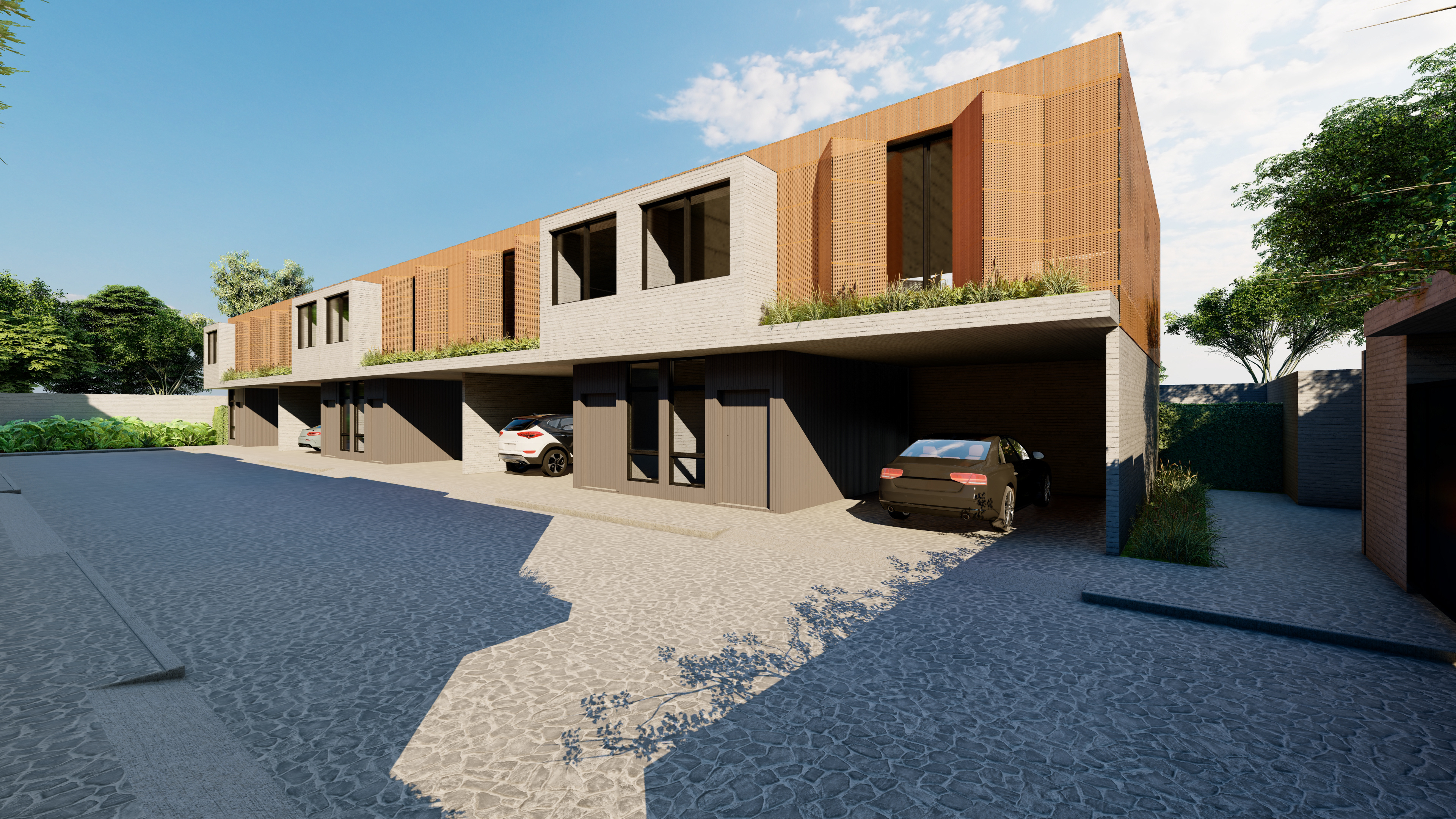 Estudo de viabilidade feito para um cliente com interesse em investir na região de Moema, este condomínio residencial conta com dez casas geminadas conectadas por uma rua central. Todas possuem garagem para dois carros e um programa completo, além de um quintal com área gourmet. Construtivamente utilizamos materiais como concreto moldado in loco. Os painéis de madeira que se abrem, dão privacidade aos moradores e funcionam como brises, além de trazer charme ao projeto.